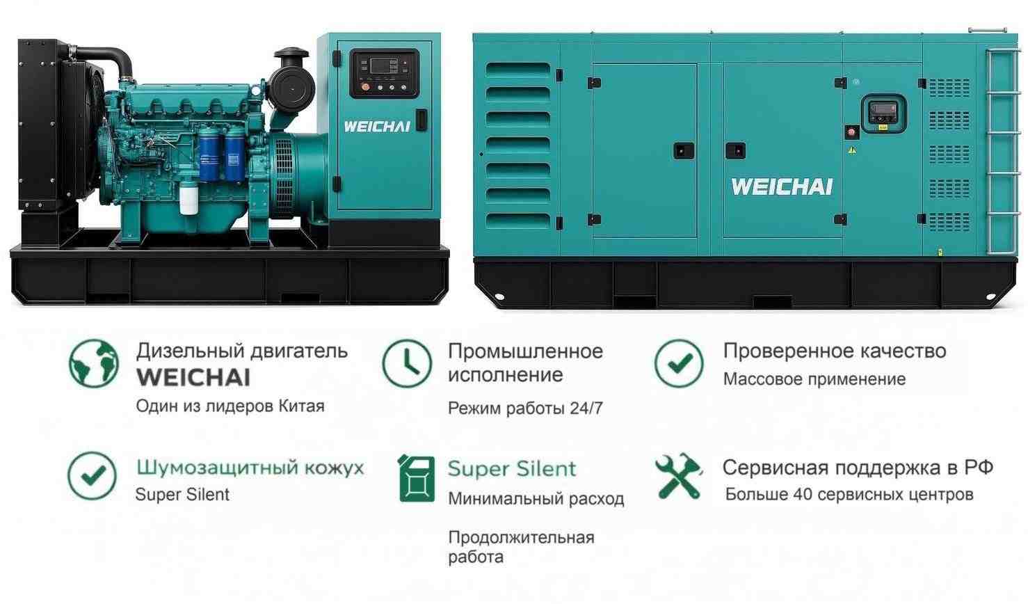 Генераторы Weichai — надёжные и мощные установки на базе китайских двигателей. Подходят для промышленности, строительства, морских и транспортных объектов. Обеспечивают стабильное питание, экономичны и просты в обслуживании.