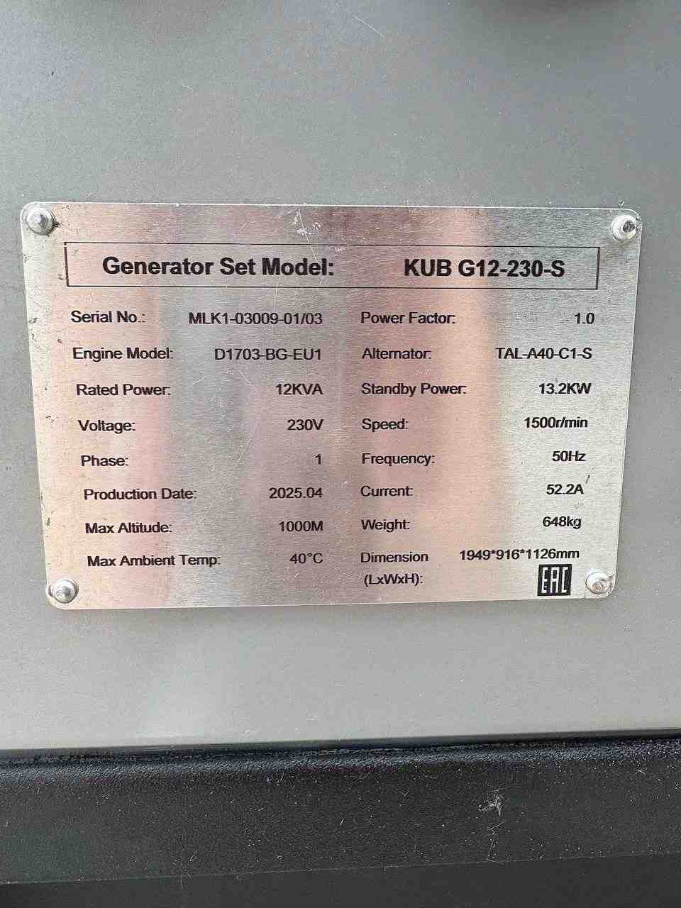 Генератор KUB G12-230-S
