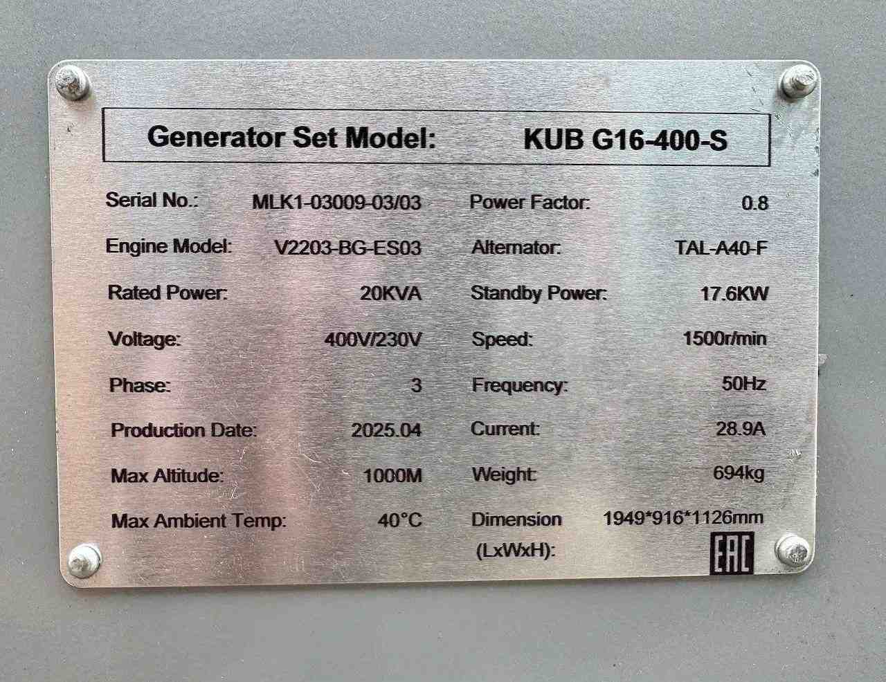 Генератор KUB G16-400-S